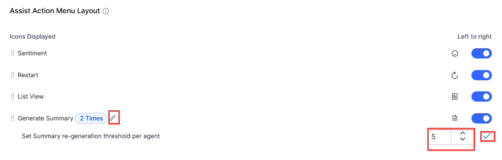 - To reorder these action buttons, drag-and-drop their names under the Assist Action Menu Layout > Icons Displayed section.