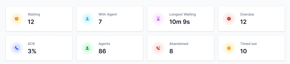 | Waiting | Live | Count of all conversations currently waiting in the queue. |