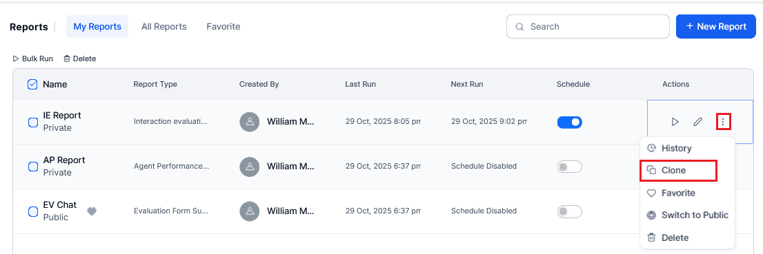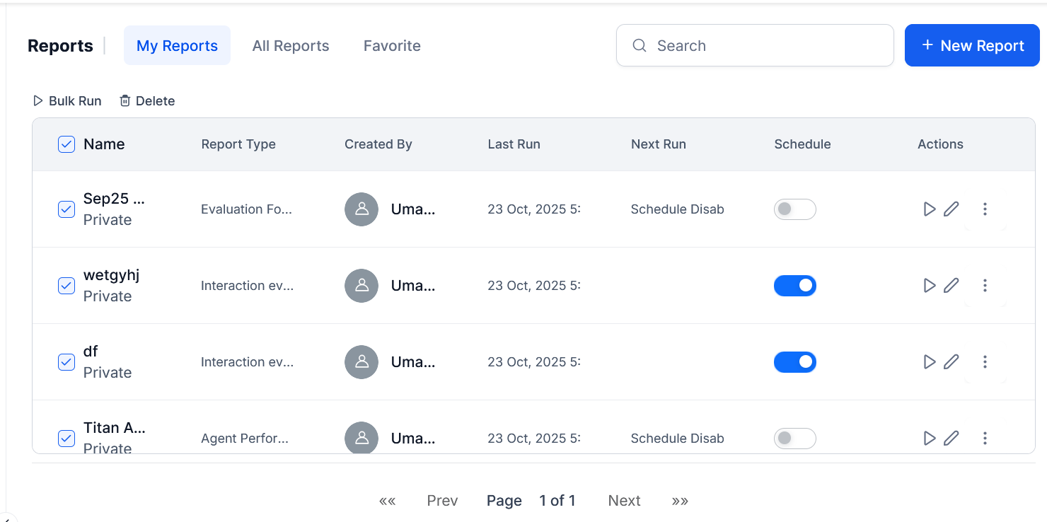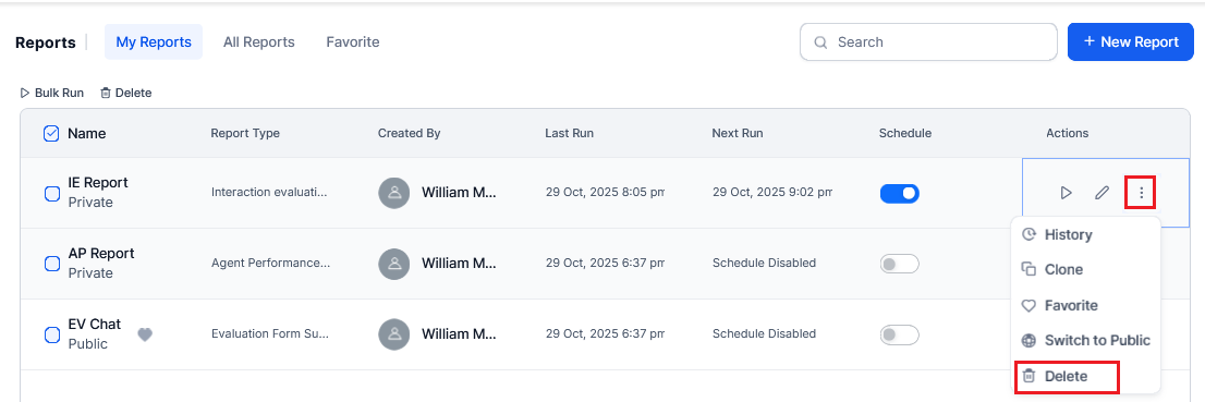 Bulk Operations: Allows you to search, filter and select reports in bulk for batch actions.