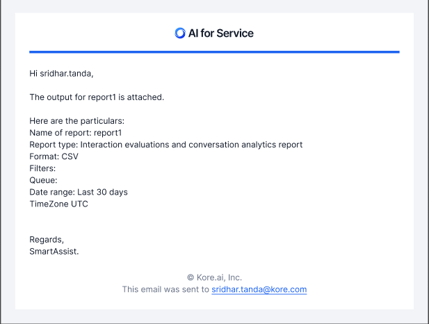 The Quality AI scheduled reporting feature provides a structured framework for monitoring, evaluating, and improving agent performance. It enables the tracking of agent productivity, adherence to quality standards, and interaction effectiveness, while providing insights into operational efficiency and compliance with evaluation metrics. By generating and analyzing scheduled reports, QA managers and supervisors can identify coaching opportunities, ensure alignment with organizational goals, and drive continuous improvement.