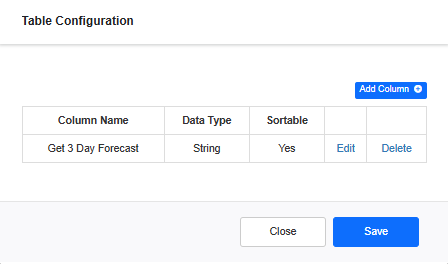In the Column Name field, enter the first column title, for example, Get 3 Day Forecast.