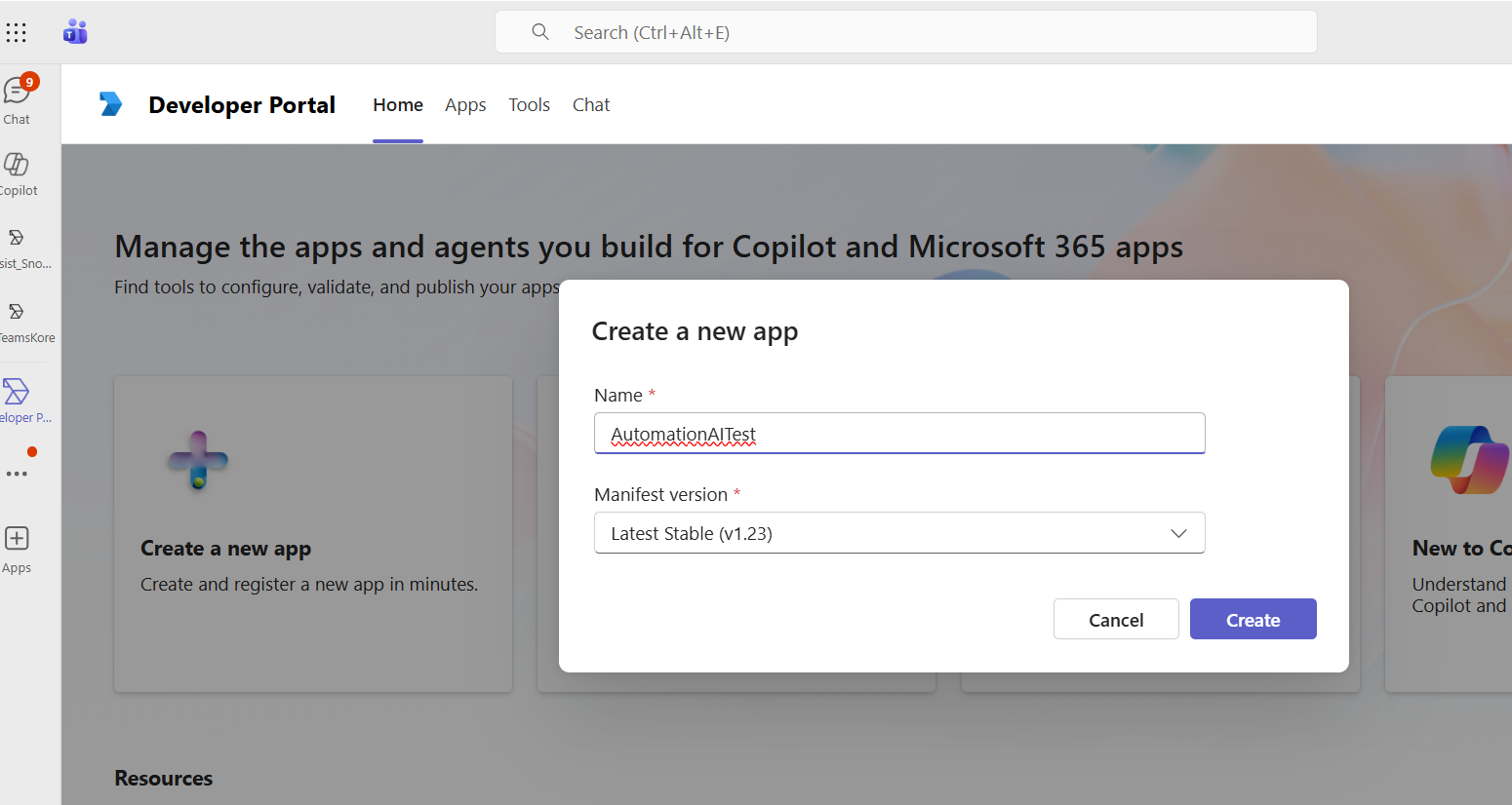 Upload the App into Teams: Go to Teams → Apps → Manage your Apps → Upload a Custom App by clicking on the “Upload an app” option → Select the ZIP file.