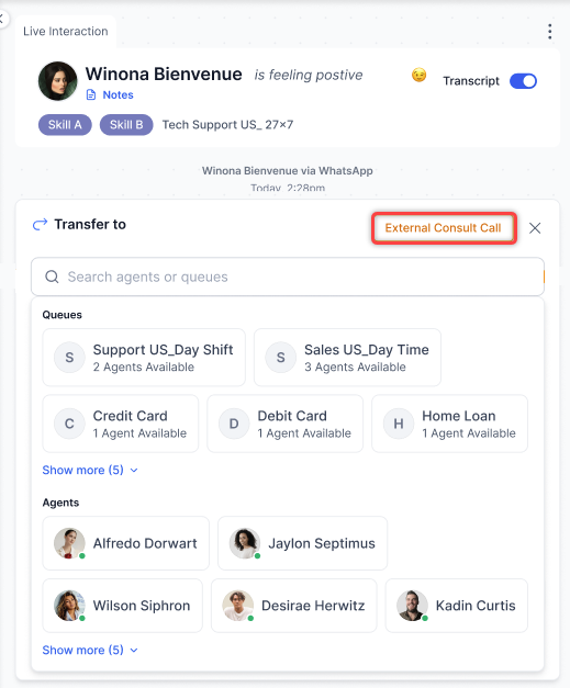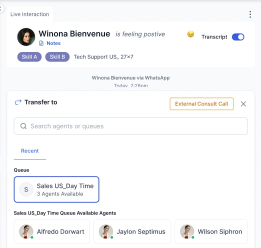 - Agent Name: Identifies the agent who is handling the live interaction.