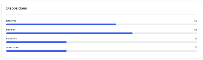 - Displays the top five dispositions selected by agents after engaging with connected calls.