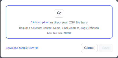 In the pop-up window, supervisors can either click to upload a file or drag and drop the file. The following columns are required to be added in the CSV: