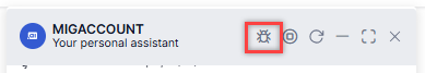 The Debug window helps you review natural language processing details, logs, and the session context and variables for a chat. To access it, click the Debug icon in the upper-right corner of the chat window.