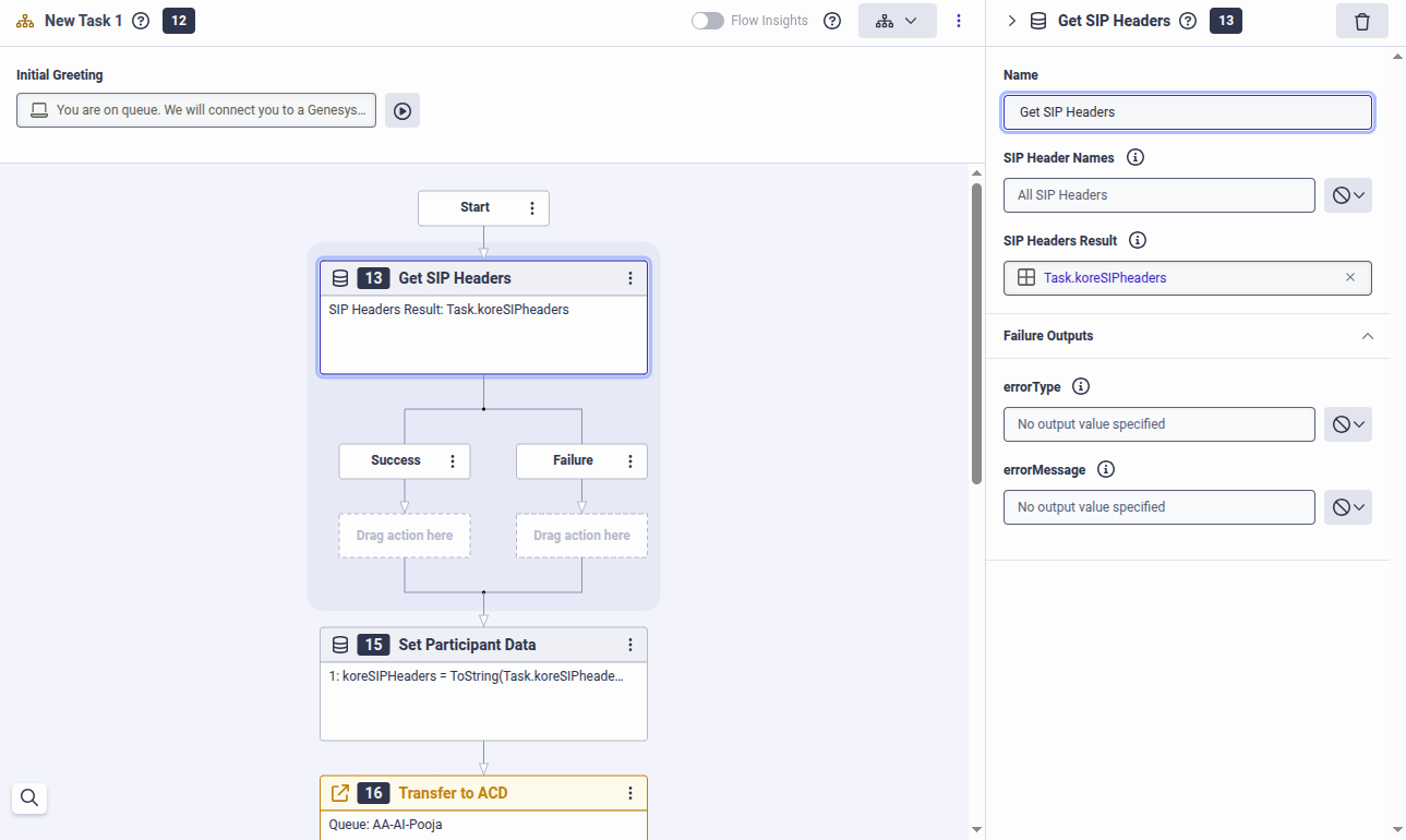 For storing the SIP Headers Result, enter the name as “Task.koreSIPheaders”: