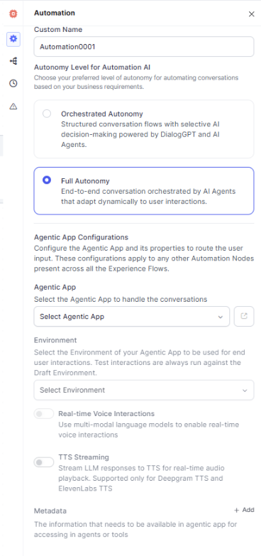 The Automation Node has been enhanced with two levels of autonomy based on your automation needs. Following are the two options: Orchestrated Autonomy and Full Autonomy.