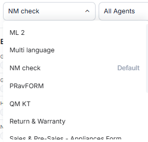 This allows you to select forms across all queues that agents are part of. You can set a form as the Default, which is persisted across sessions (both in the Heatmap page and the QA dashboard). If a different form is marked as default, it gets replaced with the previous form selected. It also highlights fatal metrics with visual indicators displaying the negative scores of agents for quality monitoring.