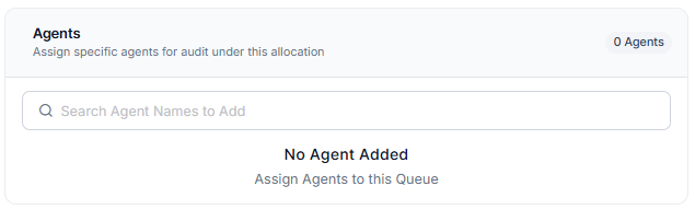 Select Agents to search an agent from the dropdown list to assign specific agents to a Queue for audit allocation.