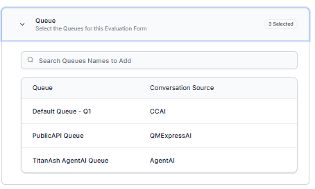6. Queue: Select the queue associated with your chosen evaluation form.