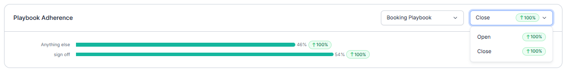 - Supervisors can select specific playbooks from the dropdown to view adherence for the configured steps instead of the default parameters.