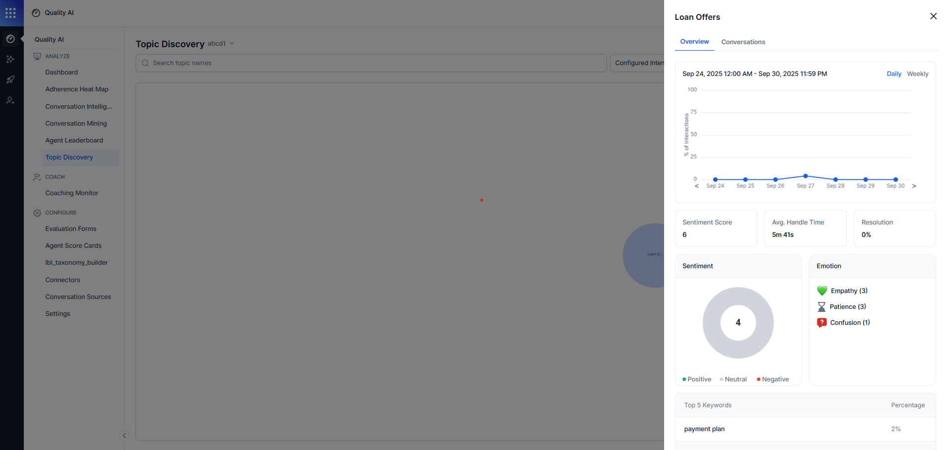 Navigate to Quality AI > ANALYZE > Topic Discovery