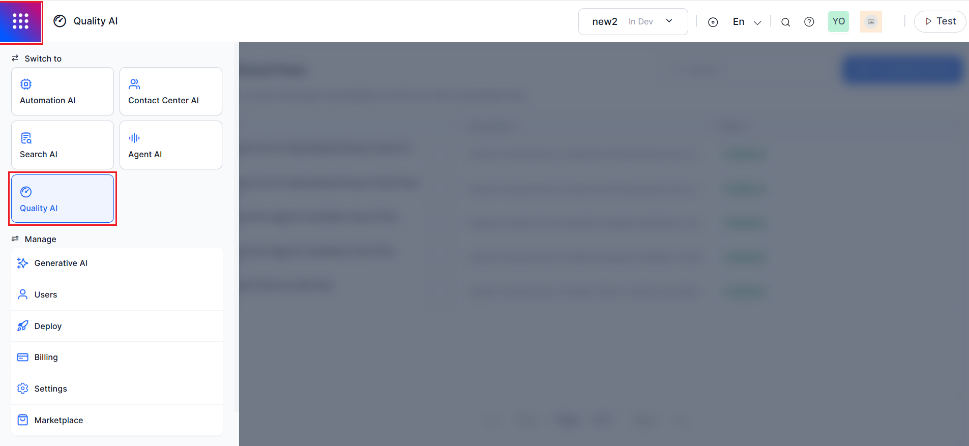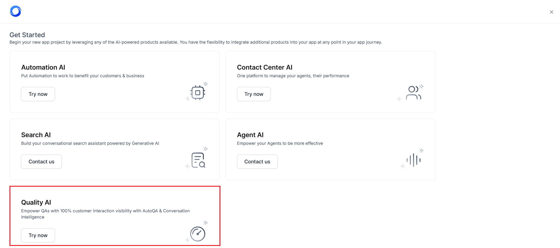 You can access Quality AI as a standalone product via the app switcher and switch or upgrade licenses/conversation sources at any time.