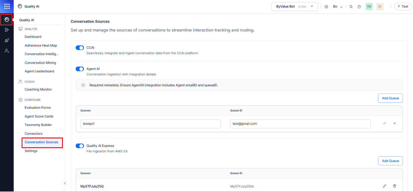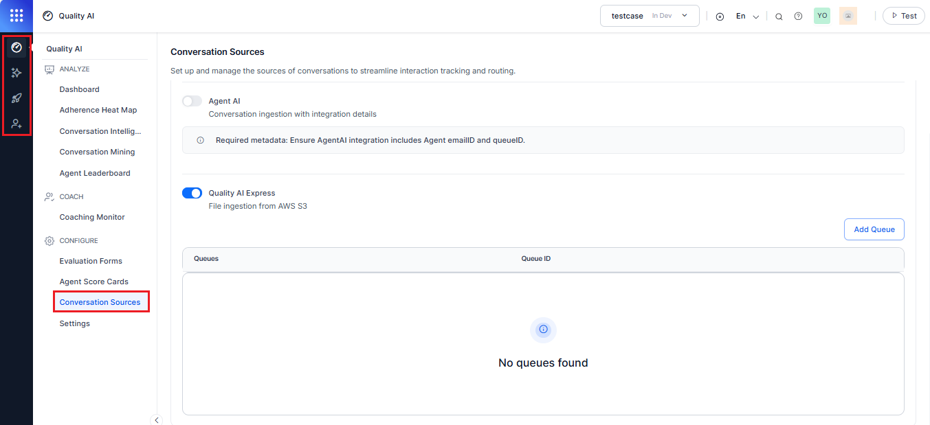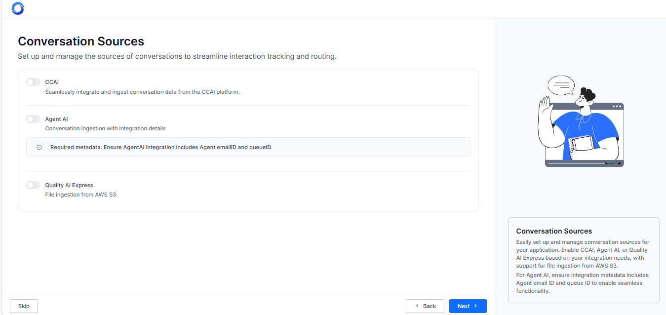 Quality AI Express: If the Quality AI Express source is disabled, the system prevents file-based conversation ingestion.